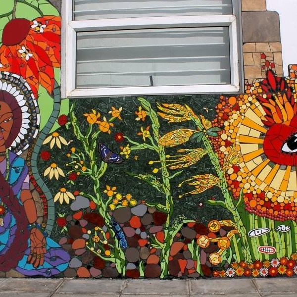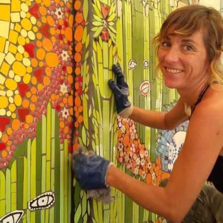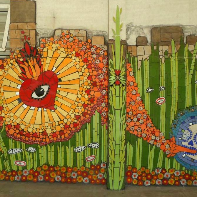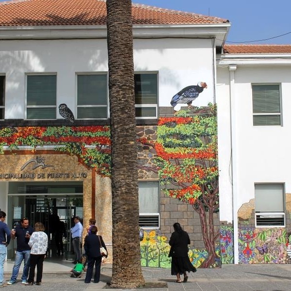 Participación como artista invitada en la 1ª intervención urbana internacional de mosaicos, realizada en frente de la municipalidad de Puente Alto, Santiago de Chile, en el año 2014.