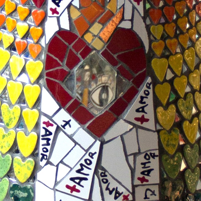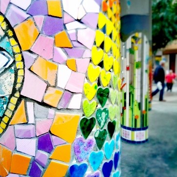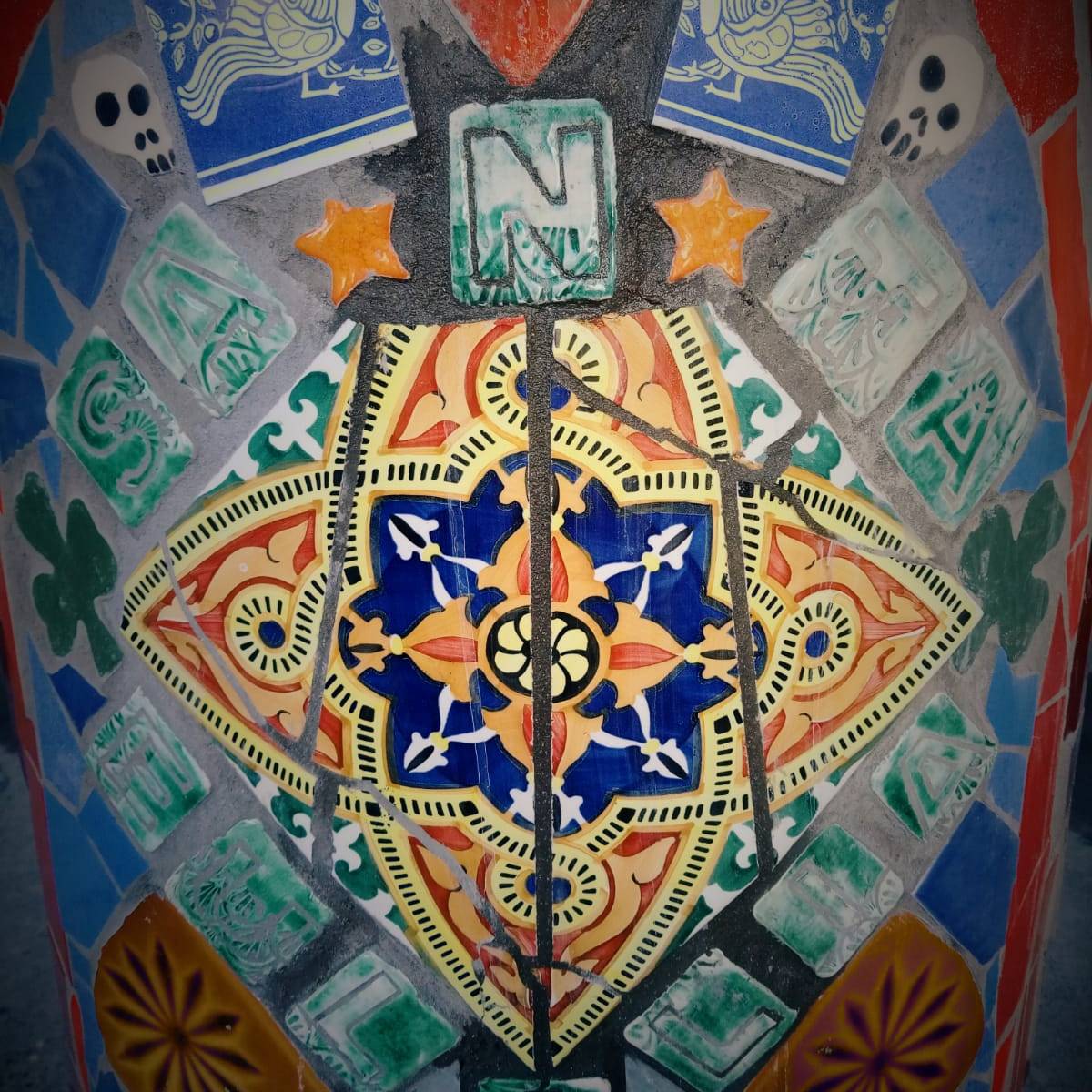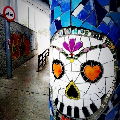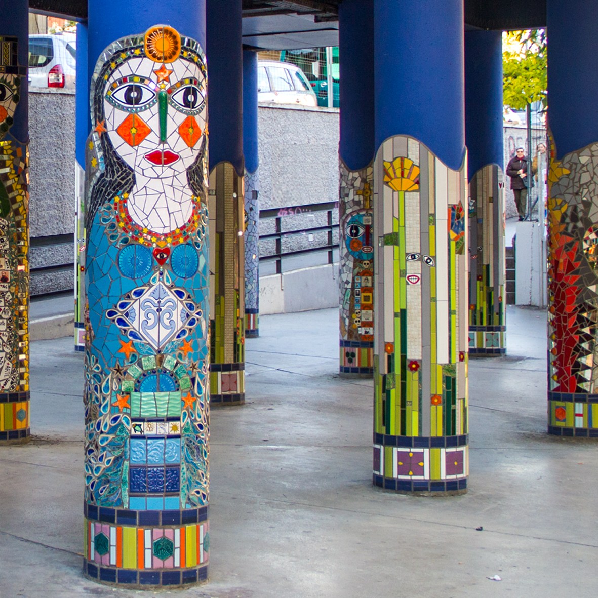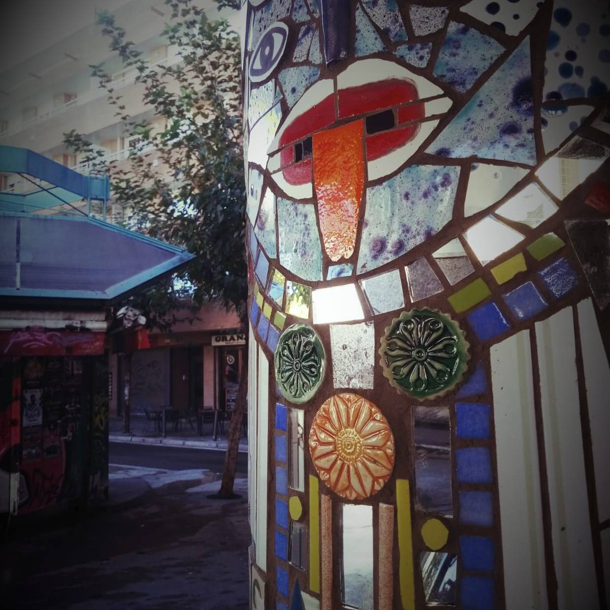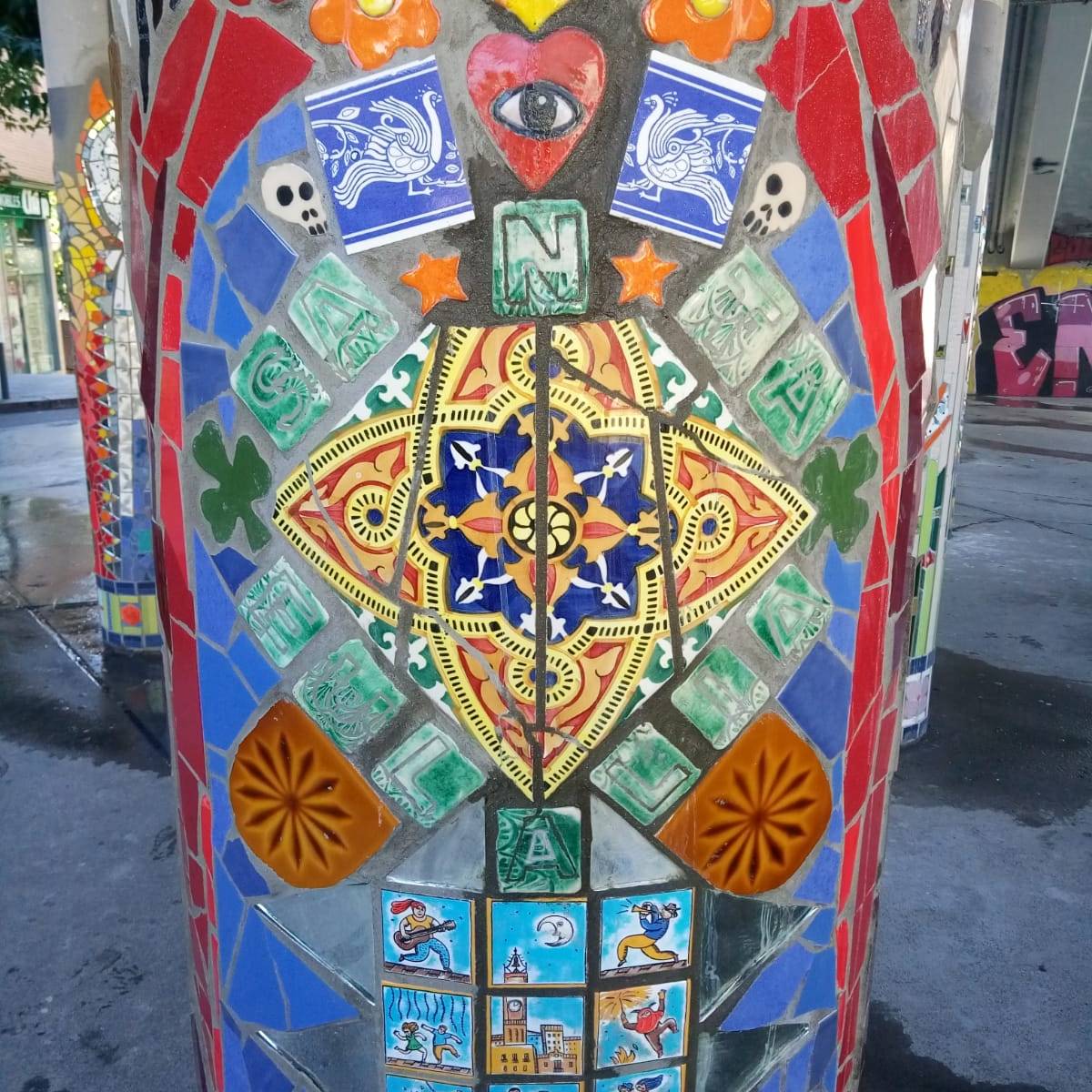 «La Santa Estación» es una obra contemporánea de mosaico urbano dirigida por Nevenka Pavic y el equipo de la Asociación Cultural La Glòria Factoría de Arte con el soporte del Ayuntamiento de L’Hospitalet de Llobregat de Barcelona.